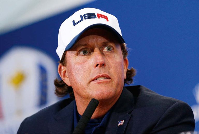 5. Phil Mickelson: „Der Druck setzte ein, als ein vorlauter Volldepp vor zwei Jahren seinen Mund zu weit aufreißen musste.“ Lefty erinnert sich noch allzu gut an seine spontane Brandrede bei der Ryder Cup-Pressekonferenz 2014 in Gleneagles.
