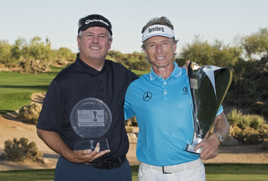 Turniersieger Paul Goydos und der Champion der Champions 2016, Bernhard Langer: Dritter Charles Schwab Cup in Folge