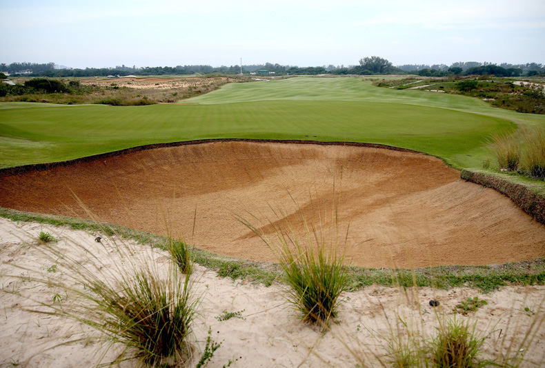 RIO DE JANEIRO, BRAZIL - MAY 30: General view of Hole 17 at the Olympic Golf Course on May 30, 2016 in Rio de Janeiro, Brazil. (Photo by Matthew Stockman/Getty Images)